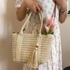 Γυναικεία μοντέρνα διακόσμηση με φούντα Τσάντες χιαστί με ψάθινη ύφανση Επώνυμα σχεδιαστής Rattan Woven Summer Travel Bag Lady