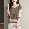 Hooded sweater women's loose knitted hoodie autumn new spring and autumn women's clothing high-end color matching top long sleeve
