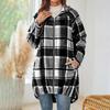 Women's Loose Comfortable Casual And Fashionable V-neck Long Sleeved Checkered Printed Long Top Coat