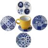 Rurumi Indigo Pattern Absorbent Ceramic Coasters, Set of 4, Round, Cup Holders, Absorbent Glass Mats (A)
