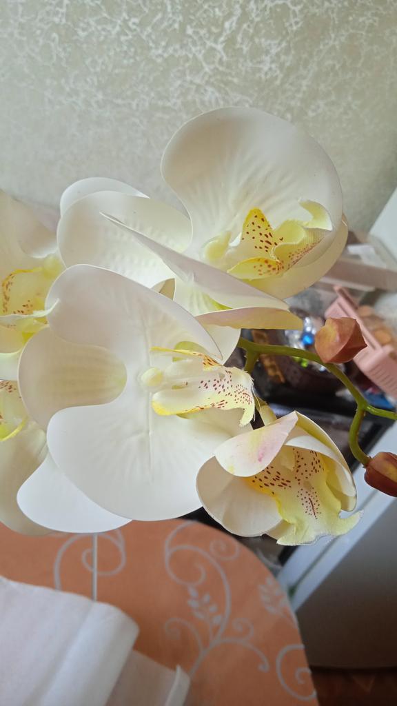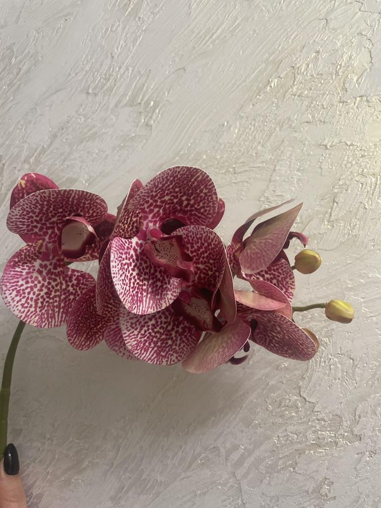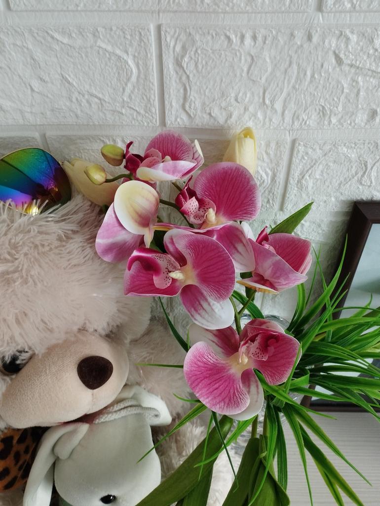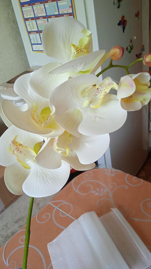 A chic orchid is practically indistinguishable from a real one - only by touching a twig, you can see that it is artificial. Since I want the orchid to bloom not twice a year, but all year round, I purchased this product. Excited! The latex flower is very similar to the real one. Thank you!! I recommend!