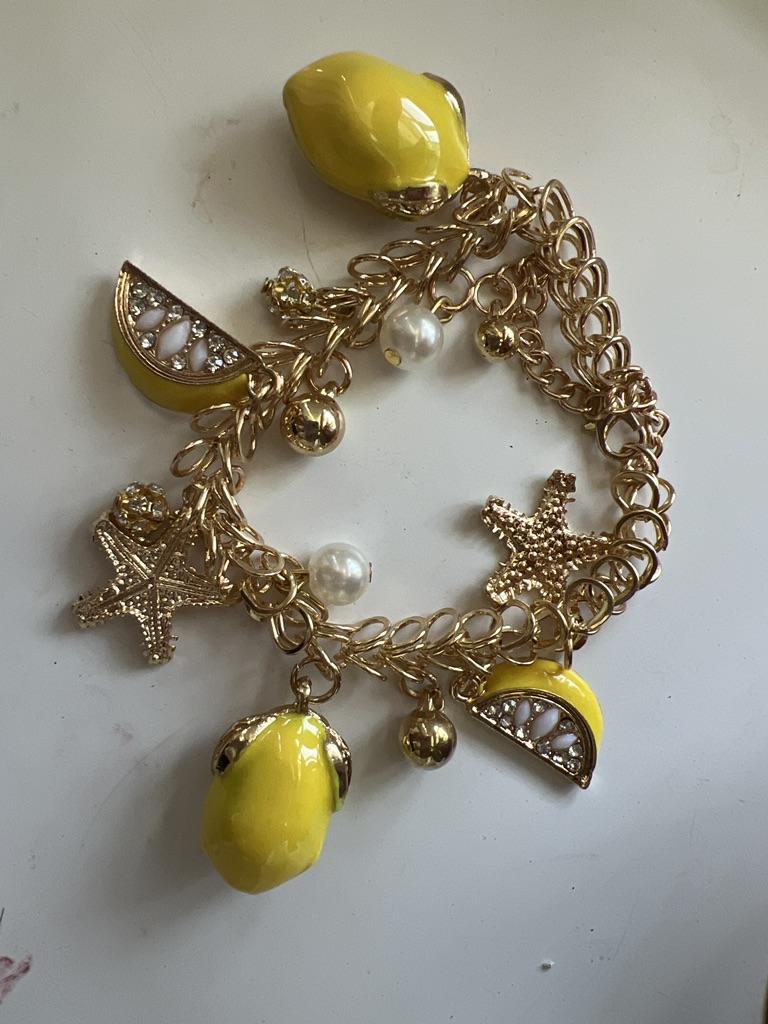 Diamonding Jewelry Creative Summer Beach Women Faux Pearl Starfish Lemon Charm Bracelet Bangle
