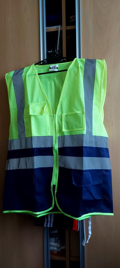 The construction vest has four pockets for pens, certificates, mobile phones and other items