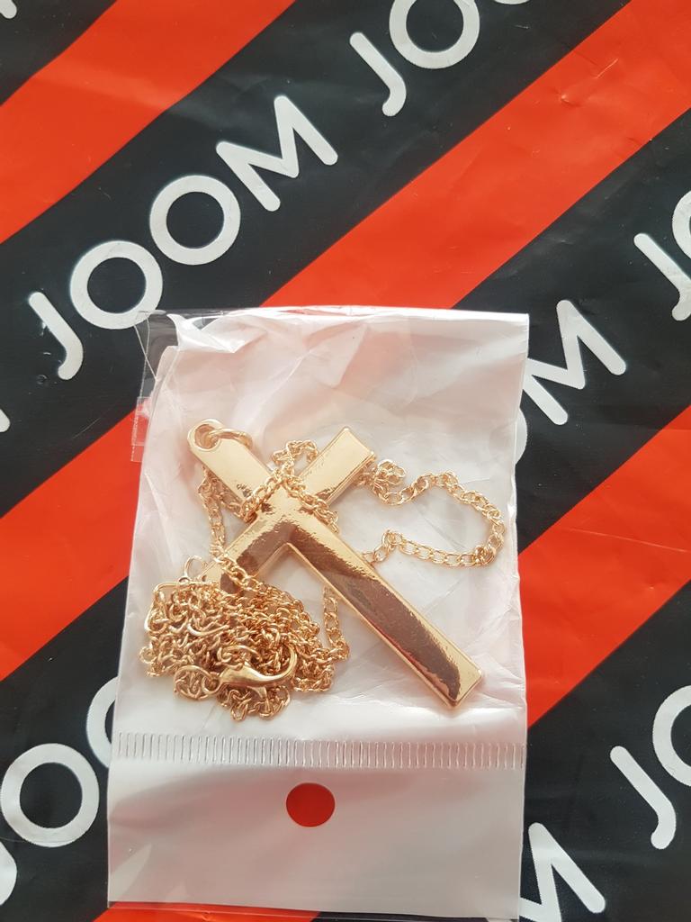 The chain is 50 cm, the cross is 5 cm by 3 cm. It looks stylish. It is made of metal. I removed one star for the notches on the back.