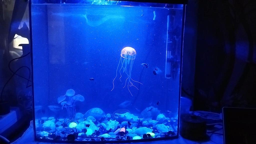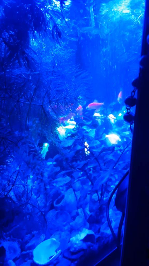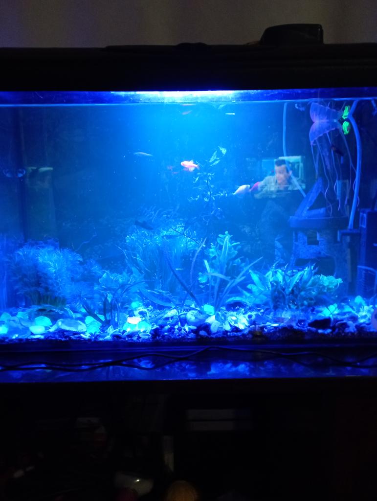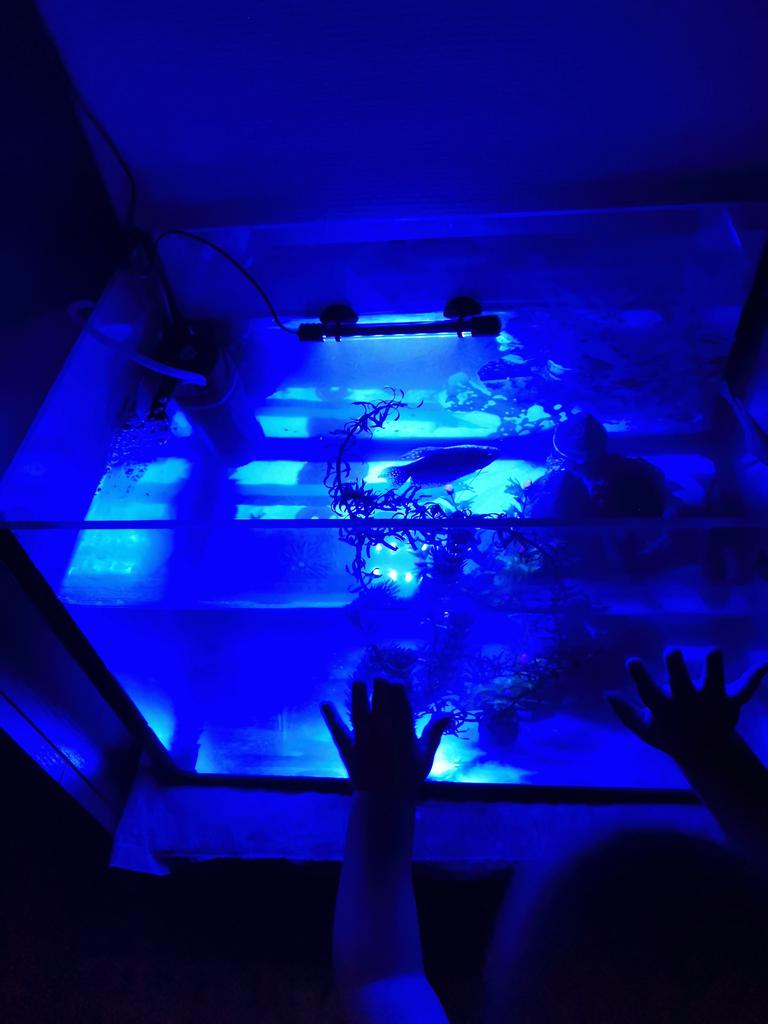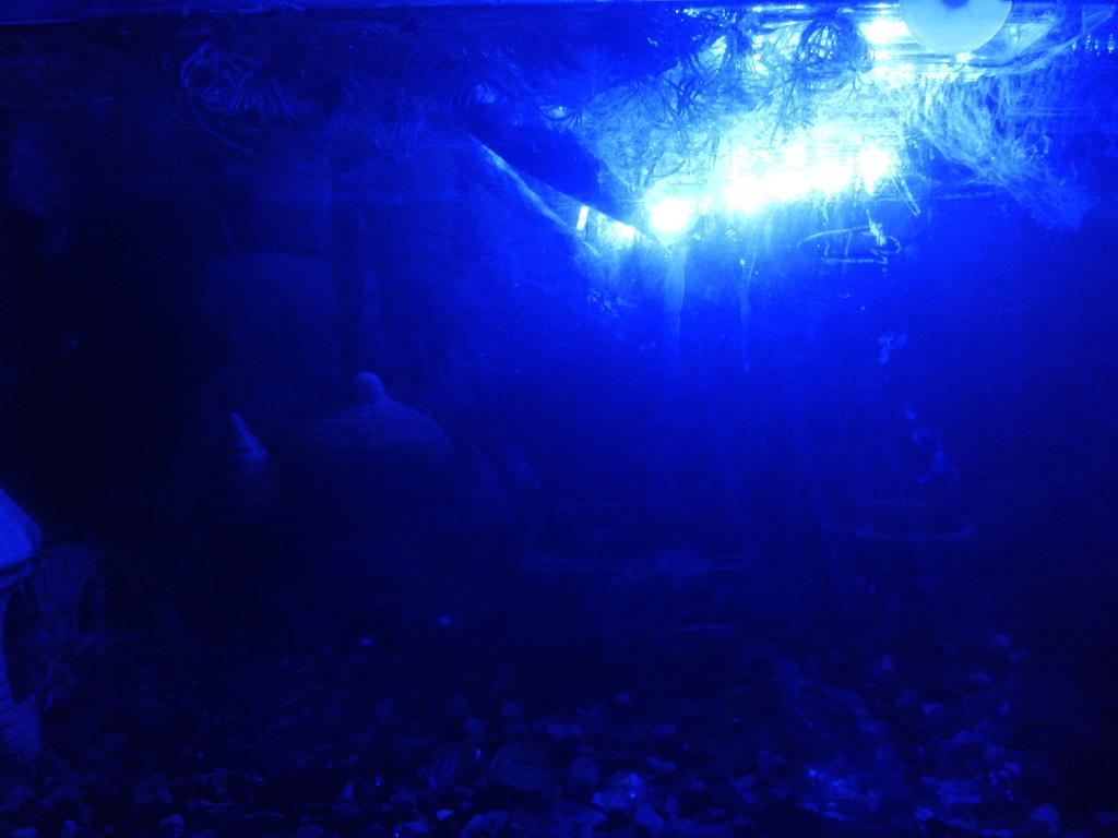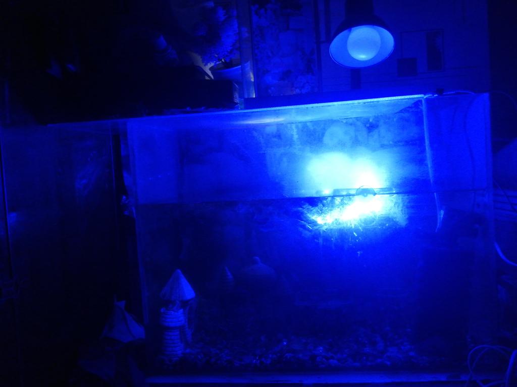 It's a pretty weird blue light in the aquarium. I preferred to put it outside, somewhere behind the aquarium.