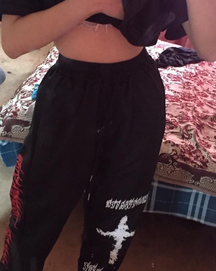 Punk Wide Pants Women Gothic Harajuku Graffiti Anime Print Pants Streetwear Korean Fashion Loose Trousers For Female