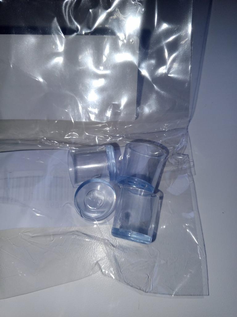 One cap is not the right size, the small one does not fit on the chair leg
