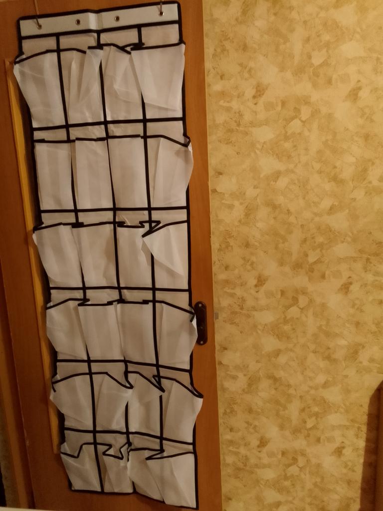 The bottom material is similar to the covering material, but thicker and stiffer. The top material of the pockets is mesh, there are metal hooks, all that remains is to figure out how to attach it to the wall.