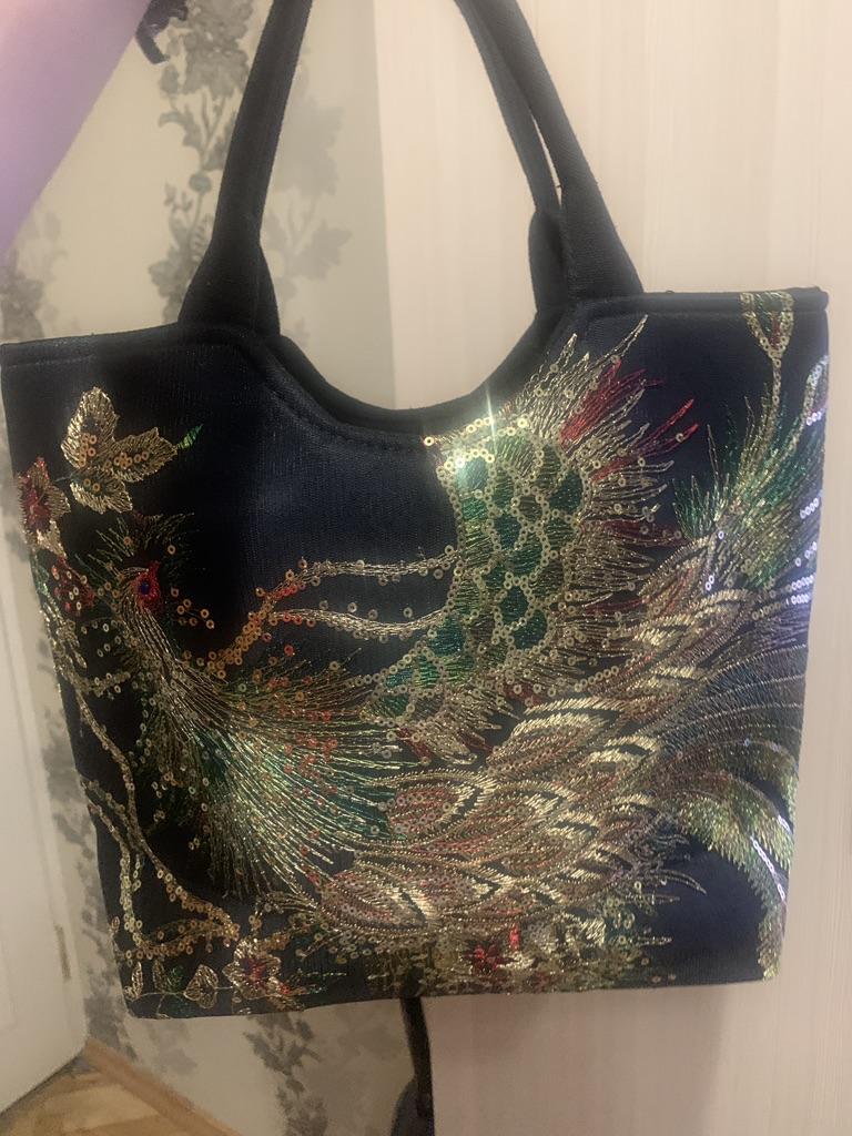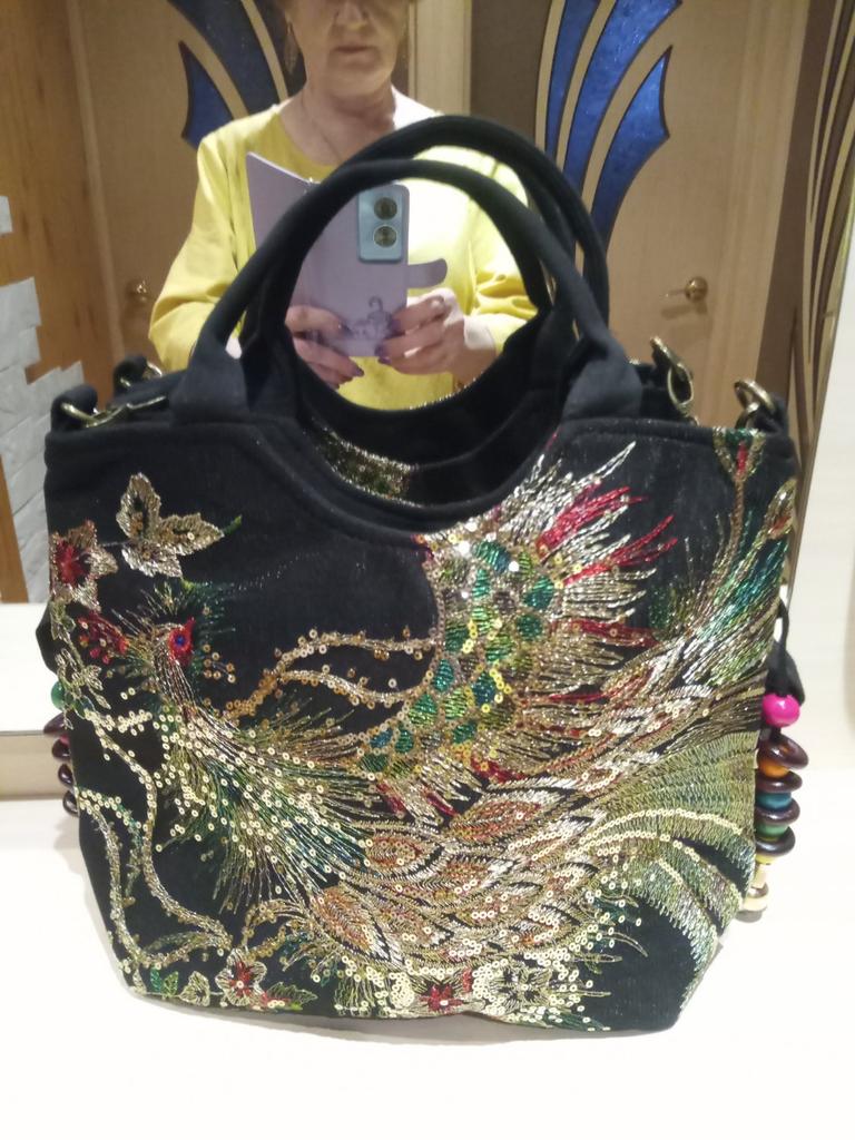Beautiful bag, very lightweight, with a wide bottom. Stable, I put it on the balcony to air out, there is a slight chemical smell. The color is darker than in the picture. The top layer of the bag is mesh with embroidery. It closes with a zipper, there is a large pocket inside.