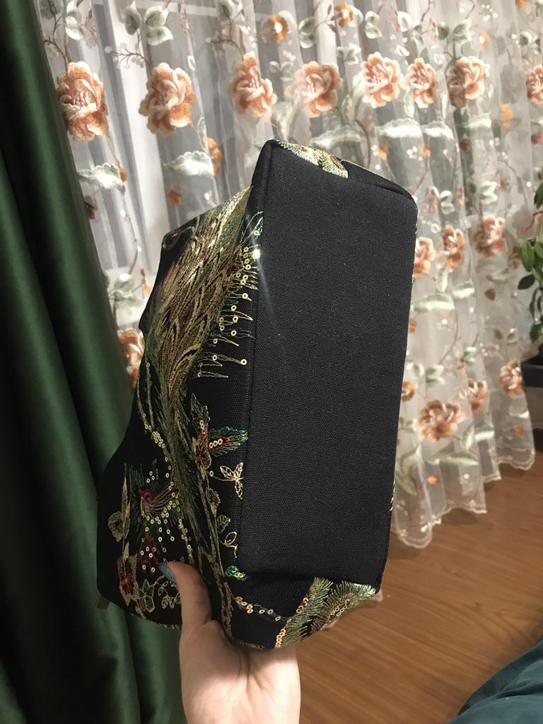 The bag is luxurious, the size is just right for going to work, everything will fit. It will perfectly match my black qipao dress. There is a long strap.