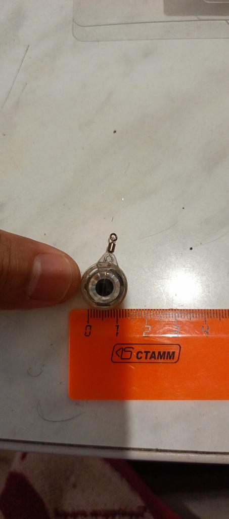 Luminous eye for bait. Works when submerged in water. Two contacts at the back.