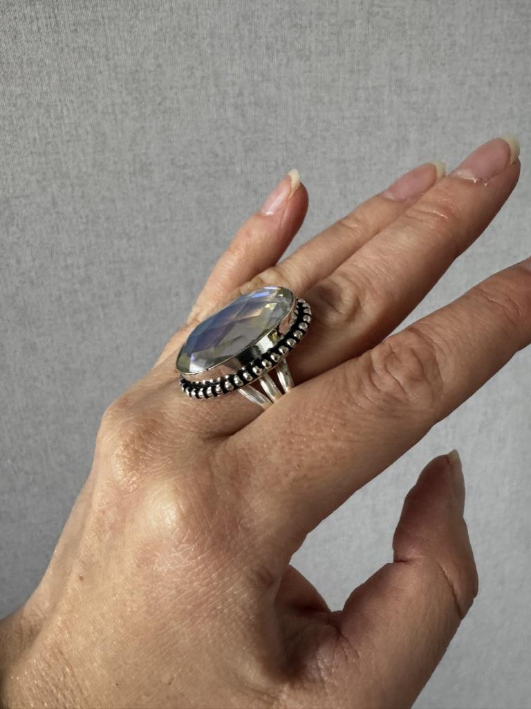 Solid 925 Silver Rainbow Mystic Topaz Gemstone Handmade Designer Ring Handmade Jewelry
