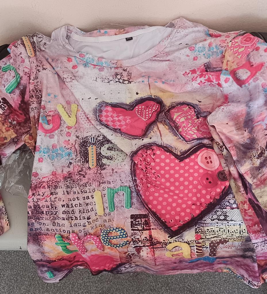 Vintage Cotton T-shirt For Women's Love Heart Print Harajuku Sweater Autumn Oversized Sweatshirt Ladies Harajuku Clothing Tops