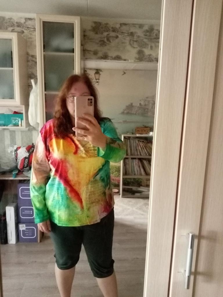 Good synthetic t-shirt, although in the picture it looks like a knitted blouse.