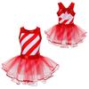 Girls Christmas Elf Santa Claus Costume Kids Shiny Striped Dance Dress Bowknot Tiered Tutu Skirt Jumpsuit for Performance