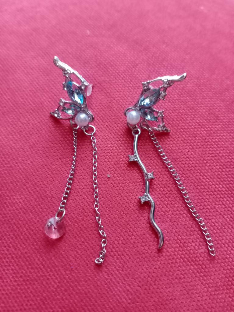 These elegant earrings feature an asymmetric chain tassel design with a butterflies cool style, making them a unique and eye-catching addition to your jewelry collection.