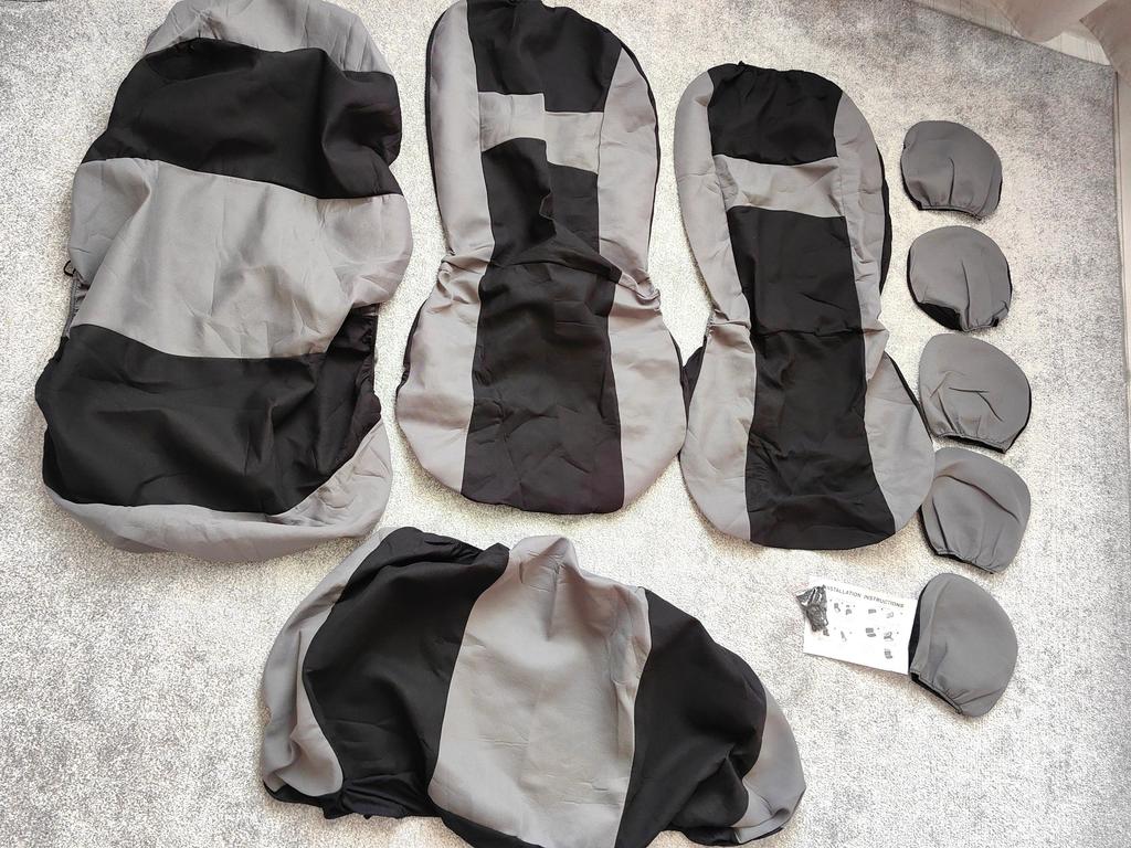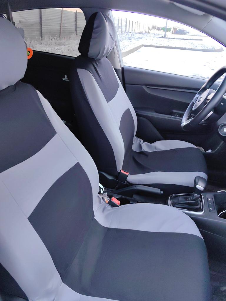 RECEIVED A BASIC SET OF CAR SEAT COVERS. COLOR - GRAY/BLACK Equipment ๐ Two covers for the front seats. One cover for the back and front seat. One cover for the back of the rear seat. Five headboard covers. A pack of hooks for fixing covers. THE QUALITY IS EXCELLENT๐๐๐๐๐ Tailored perfectly The back seat covers have a thin foam rubber on the inside Material soft polyester - stretch There is no chemical smell, only a slight vinegar smell, which quickly disappears after being removed from the packaging.. Recommend๐๐ฏ