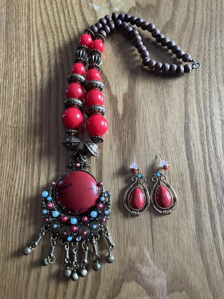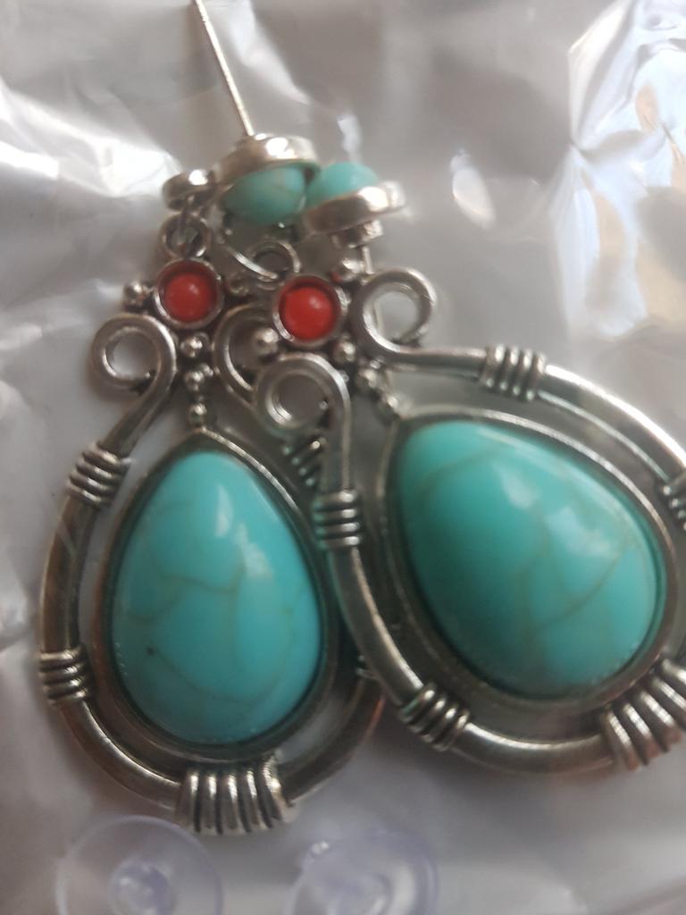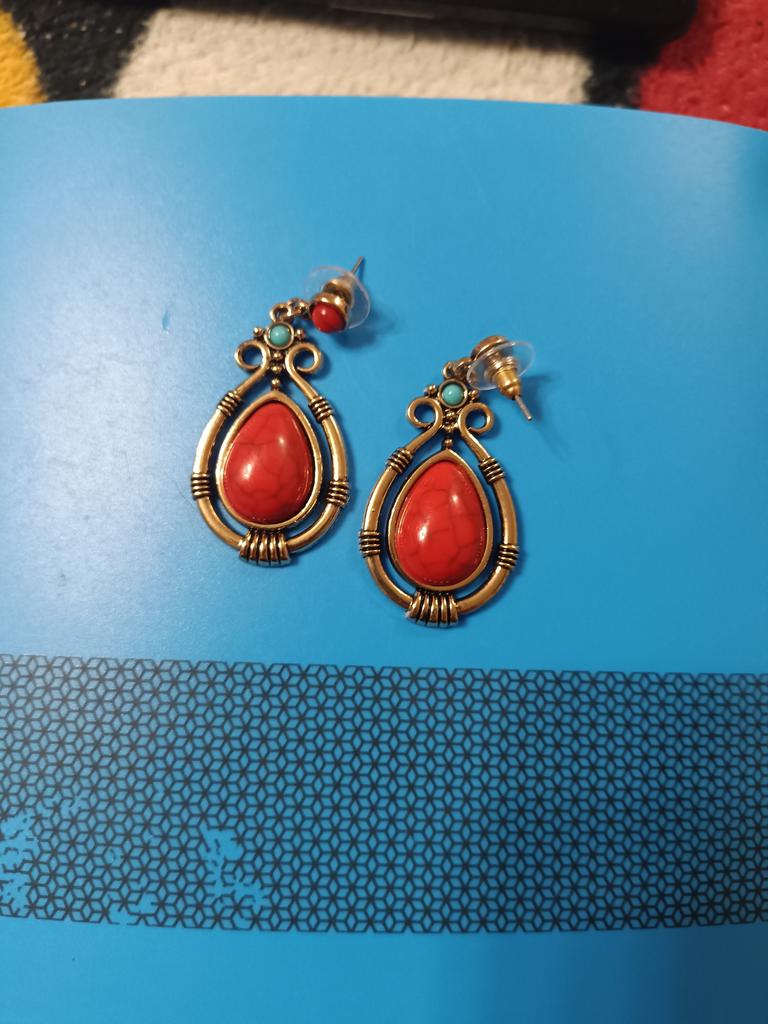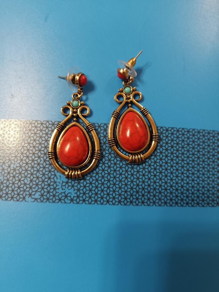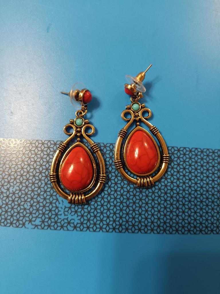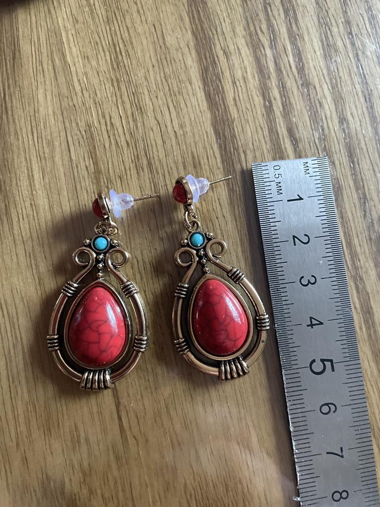 1pair Fashion Vintage Natural Red Stone Turquoise Water Drop Shaped Dangle Earrings for Women, Holiday Banquet Jewelry Gift