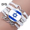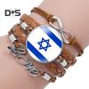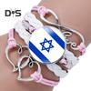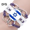 Round Israel Flag Decor Bracelet Multi Layer Adjustable Handmade Bracelet Metal Letter Decor Faux Leather Wristband Jewelry Gift