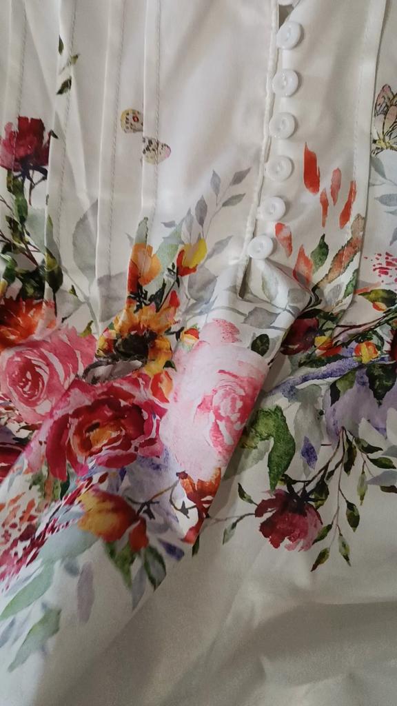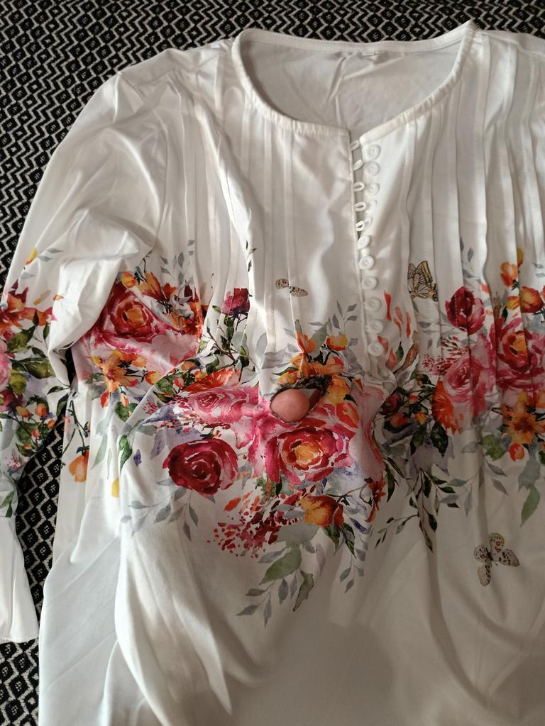 Women Spring Floral Printing Puff Long Sleeve T-Shirts Loose Buuton V-Neck Plus Size Tee Shirt Tops Shirts Ans Blouses