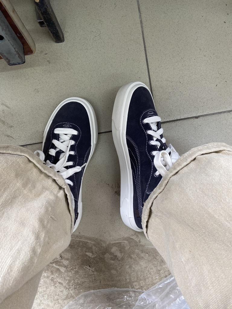 The Puma Capri Royal Suede (Model: 39375201-Flat Dark Gray-Frosted Ivory) sneakers are crafted from natural and synthetic leather in a stylish suede design. The brand Puma reflects its unique design ethos, providing a sophisticated appearance and comfortable fit. The color combination of Flat Dark Gray and Frosted Ivory makes it easy to match with various styles.