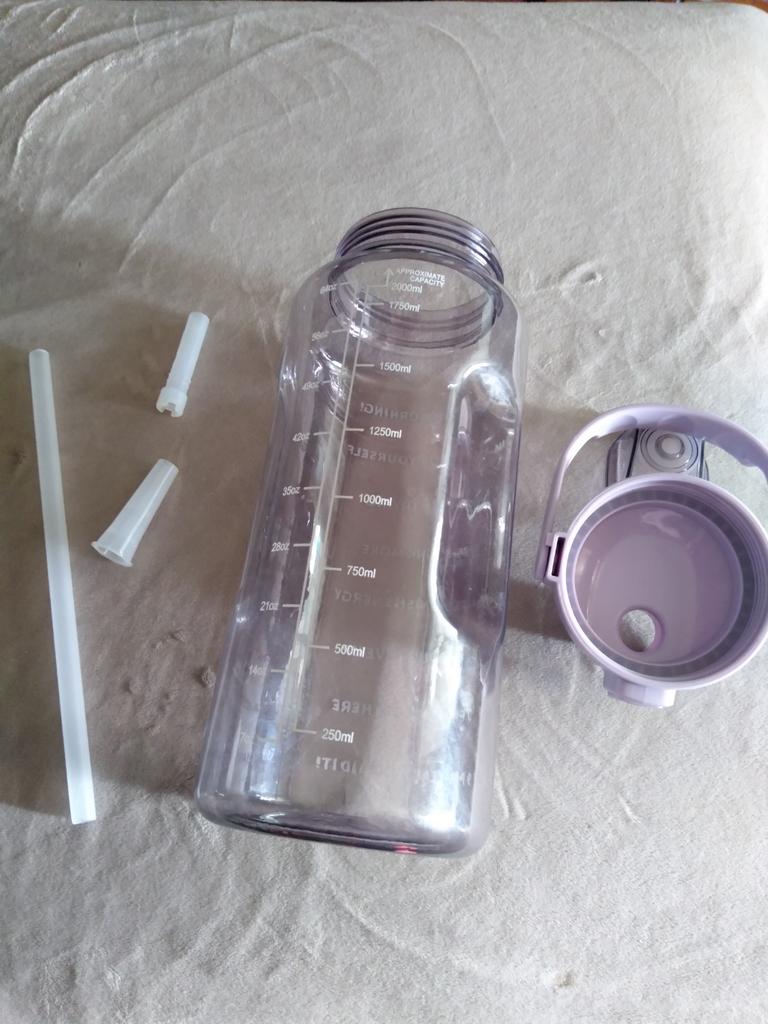 2L Straw Water Bottle Large Capacity Plastic Water Cup Portable Drink Bottle With Time Marker For Outdoor Sports Fitness