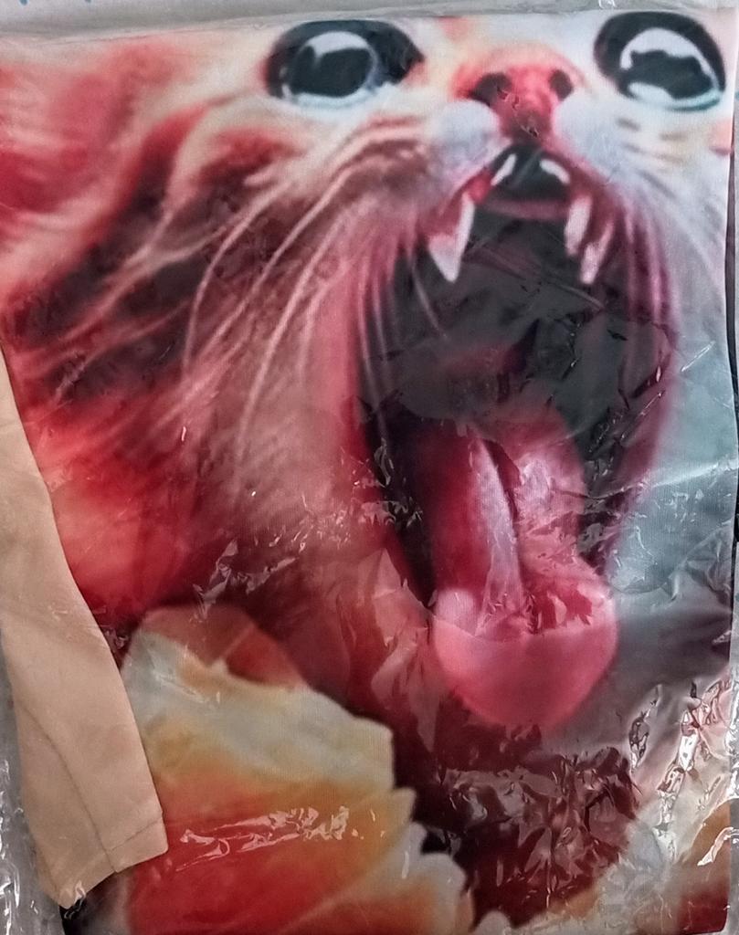 The T-shirt is beautiful, although it is synthetic. Kitty liked it and so did I) L at 46-48 is a bit loose. Delivery is about a month. Thanks Jum)