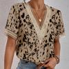 Summer V-neck Lace Loose Print Women's Blouse Tops Stylish Office Lady Short Sleeve Shirt Women Vintage Elegant Casual Blouses Female Clothing 24308