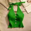 Summer Chic Hang Neck Sexy Knitted Suspender Girl Sweet Style Lace Up Backless Tops New Design Casual Fashion Camis Chic Clothing