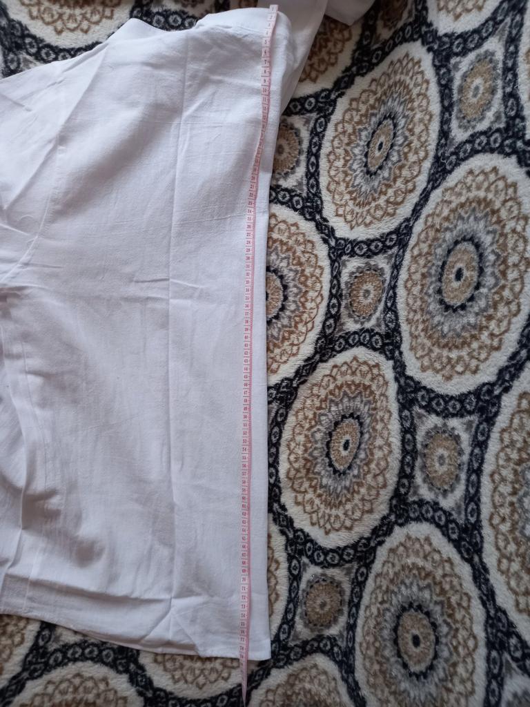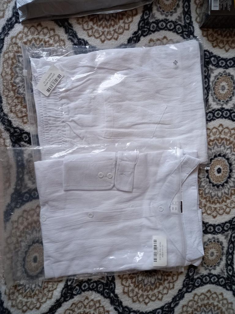 The material is super, cotton & linen, something combined and the quality is very good. I ordered size 3XL, but after washing it turned into size M.