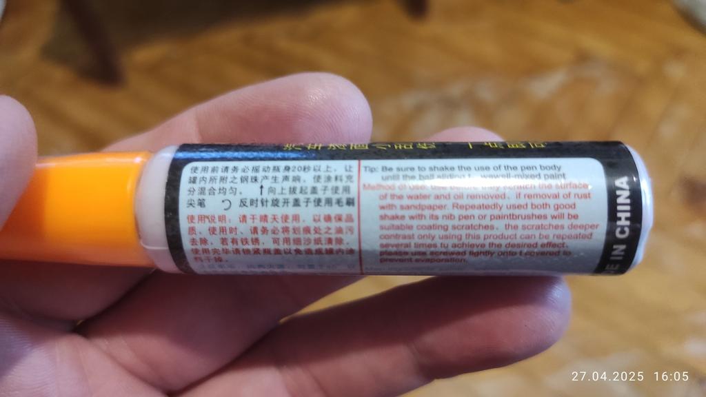 I hope I don't need the touch-up pen so soon. Thanks. It looks very good. There is no paint damage to the car yet, so I can't say anything about the quality yet.