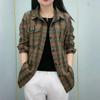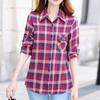 Checkered Long Sleeve Cotton Shirt for Women Fashionable Middle-aged Mother Spring Summer Trendy Casual Shirts Top