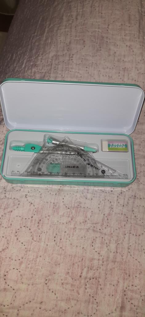 A good drawing set for junior or middle school. Metal case, has everything needed