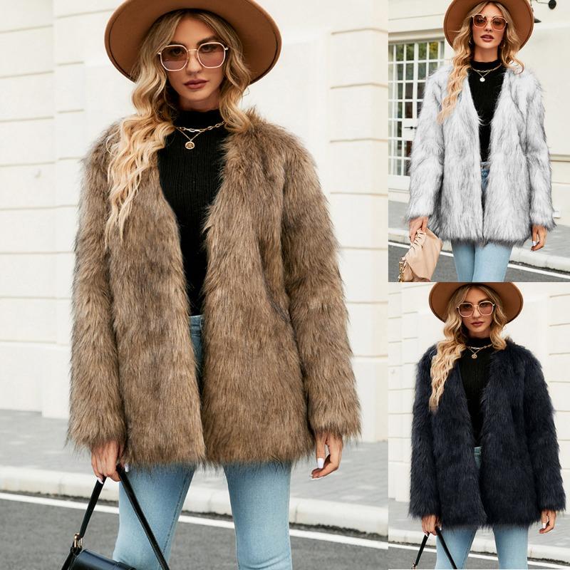 Autumn Winter V-neck Women's Faux Fur Jacket Warm Fashion Casual Short Top Oversize Coat Artificial Fur