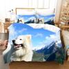 Samoyed Duvet Cover Set Cute Dog Pattern Decor Bedding Set Grass Green for Kids Girls Adults Lovely Animal Polyester Quilt Cover