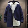 Autumn and Winter Fashion Trend Solid Color Plus Fleece Trench Coat Men's Casual Loose Thick Warm Large Size Coat