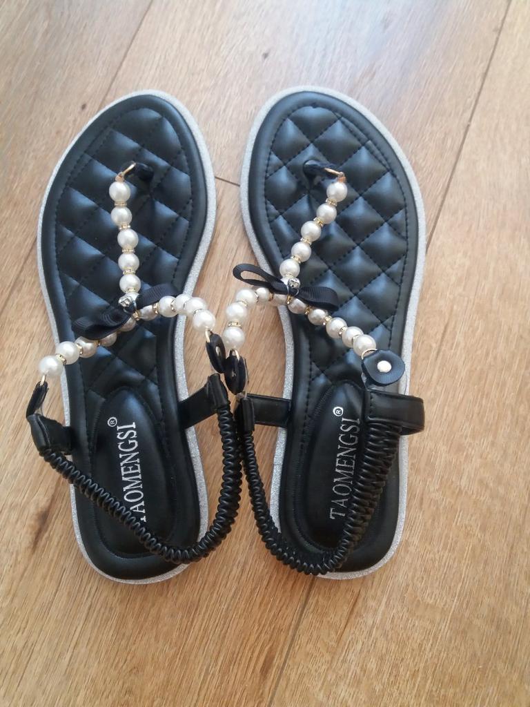 Fashion 2024 New Bohemian Women Sandals Plus Size 43 Women Shoes Flat Pearl Beach Open Toe Shoes Buckle Strap Platform Sandals Women