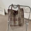 Woolen Plaid Retro Handbag Large Capacity Versatile Shoulder Bag College Student Double-sided Backpack