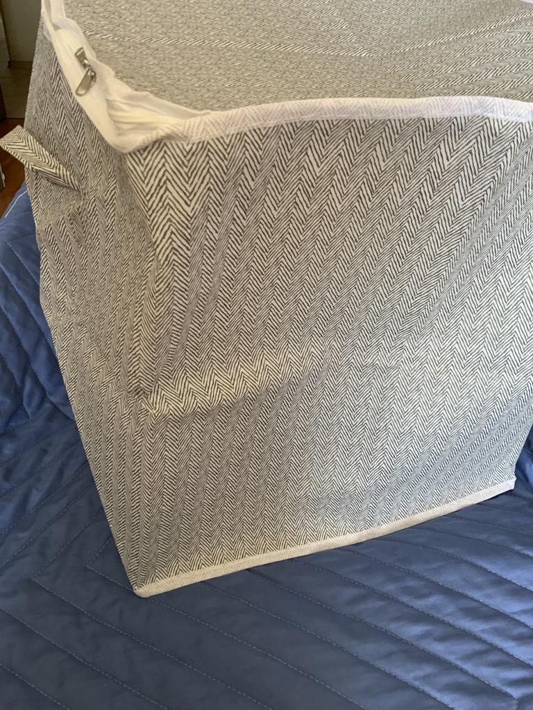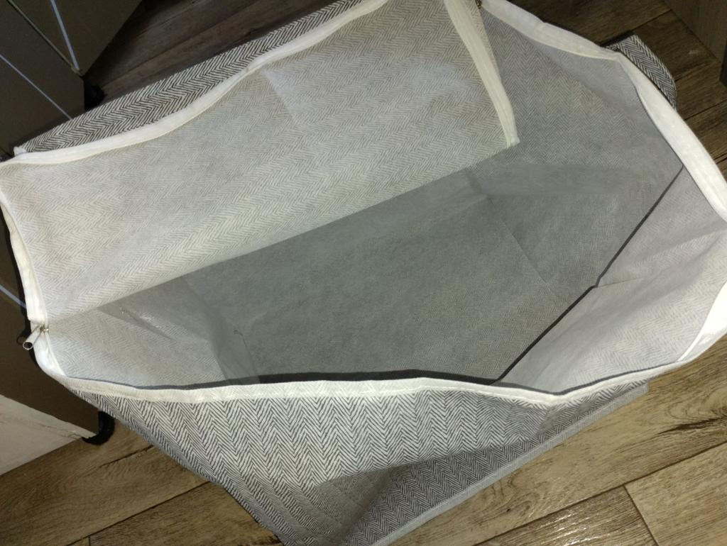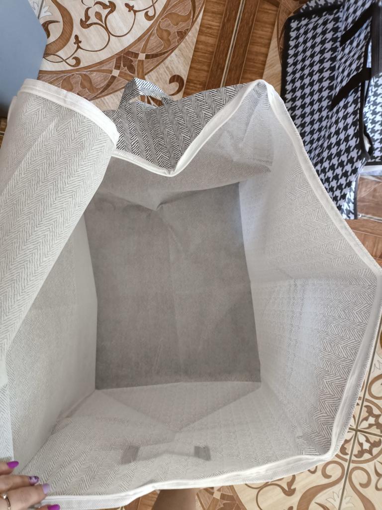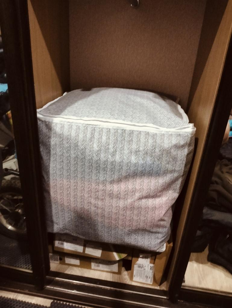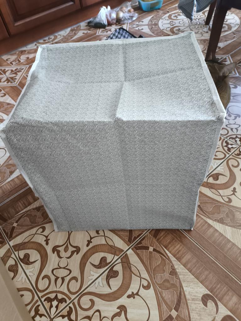 I bought it to store guest blankets and pillows, I am quite happy, it is roomy, sewn well, for 183₽ it is very good
