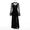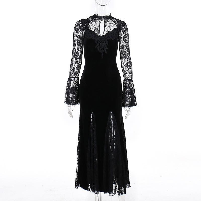 Summer Temperament Sexy Slightly Transparent Slim Fit Long Dark Lace Fishtail Long Sleeved Dress for Women Dresses