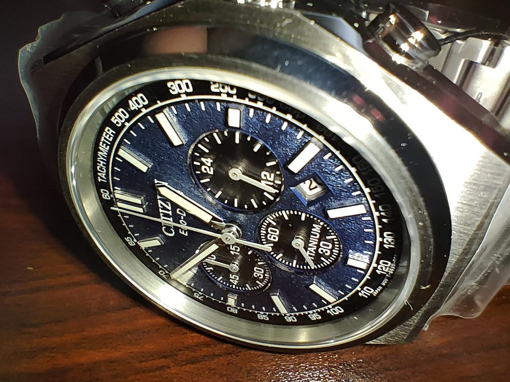 Citizen Zenshin Chronograph Super Titanium Blue Dial Eco-Drive CA4610-85L 100M Men's Watch