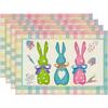 Buffalo Check Rabbit Carrots Easter Set of 1/4 Place Mats, 30 X 45 Cm, Spring Banquet Placemats, Washable Place Mats, Kitchen Party Decoration