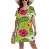Retro 3D Colorful Printed Dress Women Summer Short Sleeve Round Neck Casual Dress Large Size Lady Sundress Vestidos