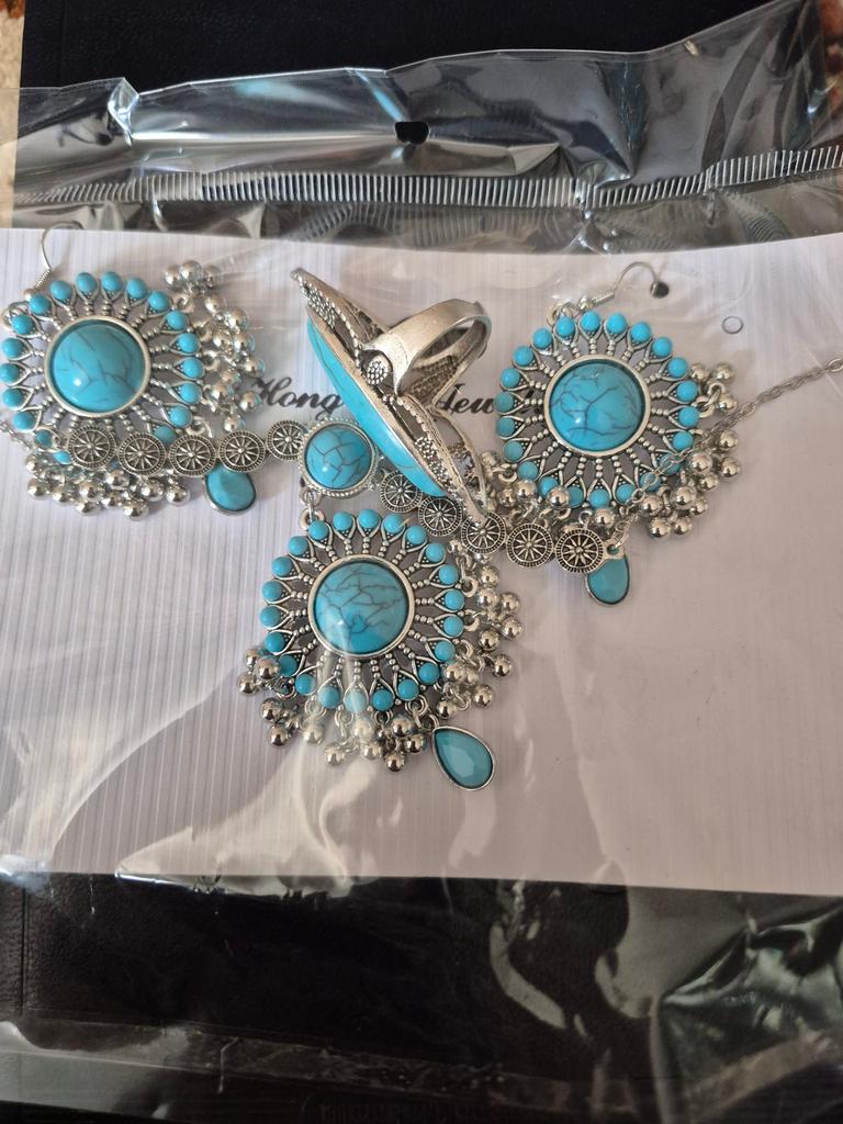 Retro Ethnic Turquoise Bohemian Earrings, Rings, and Necklace Set for Women