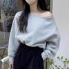 Women's Off-Shoulder Solid Color Sweatshirt, Casual Loose Fit, Long-Sleeved, Spring/Autumn.