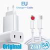 40W Dual PD USB C Charger Quick Charge 3.0 Type C EU/US Plug Phone Charger Adapter For Apple iPhone 15 14 Pro Max Samsung Xiaomi