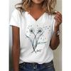 New Women T-shirt Simple Graphic Print Oversized Women's Trending Clothing Fashion Short Sleeve Shirt Women V-Neck Blouse 2024