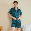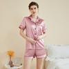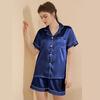 Experience ultimate comfort and elegance with this Women's Summer Short Sleeve Pajama Set. Crafted from luxurious satin, it offers a silky smooth touch against the skin, perfect for warm nights. The set features a casual lapel style, adding a touch of sophistication to your nightwear. Available in a solid color, these pajamas are both stylish and timeless, making them a versatile addition to any wardrobe. Ideal for lounging or a restful night's sleep, this pajama set combines style and comfort seamlessly.