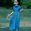 2025 Summer New Cotton and Linen Dress Women's Loose Temperament Thin Lace-up Round Neck Short-sleeved Long Dress Women