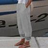 Women's Casual Solid Color Lace Splicing Nine Minute Pants Loose Elastic Waist Straight Pants Comfortable Pocket Nine Minute Pants